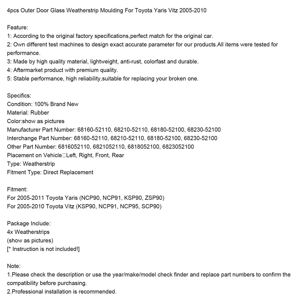 4pcs Outer Door Glass Weatherstrip Moulding Fit For Toyota Yaris Vitz 2005-2010