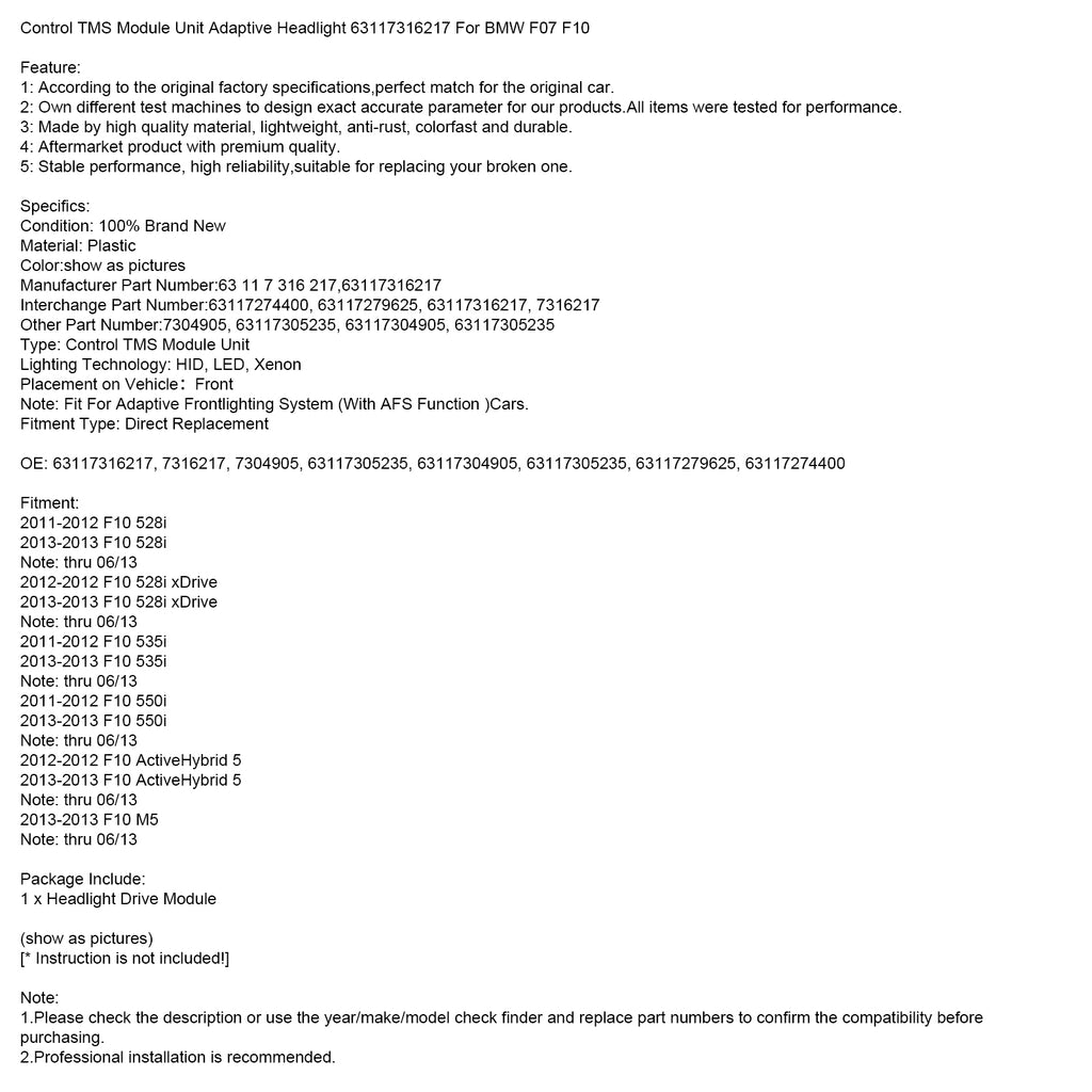 Control TMS Module Unit Adaptive Headlight 63117316217 For BMW F07 F10