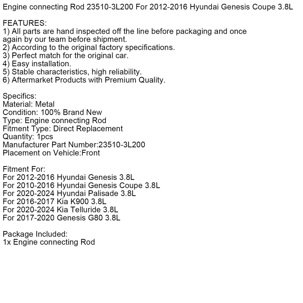 Engine connecting Rod 23510-3L200 For 2012-2016 Hyundai Genesis Coupe 3.8L
