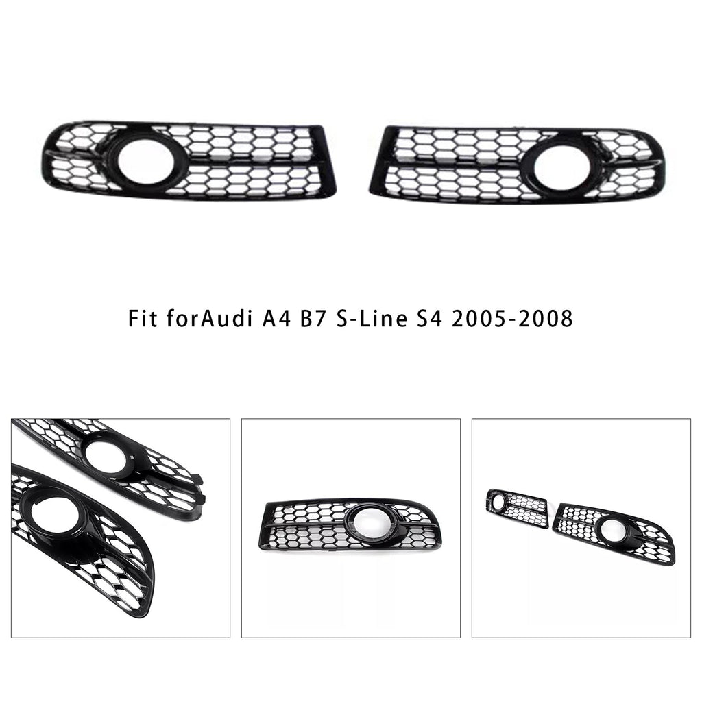 Front Bumper Honeycomb Fog Grille Cover For Audi A4 B7 S-Line S4 2005-2008 Black