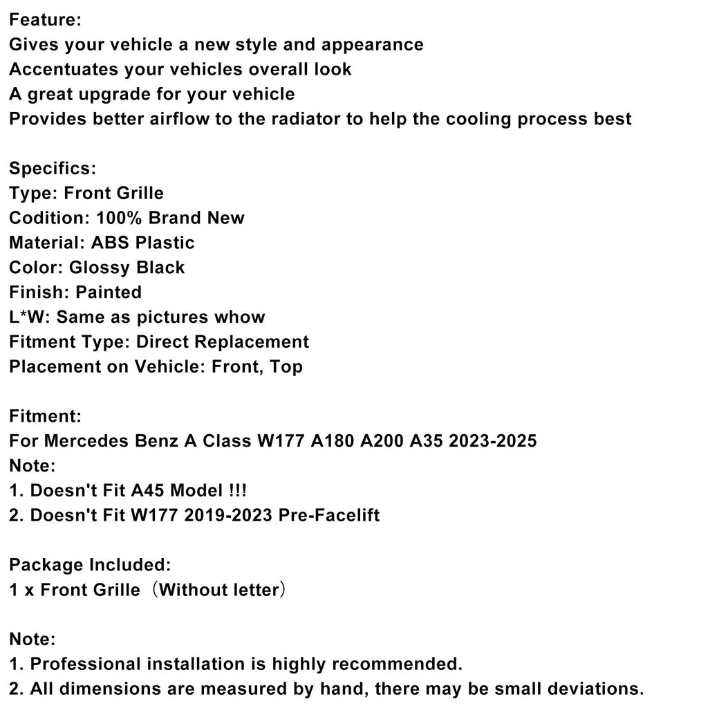 Gloss Black Front Grille Grill Fit for Mercedes A-Class W177 A35 A180 2023-2025