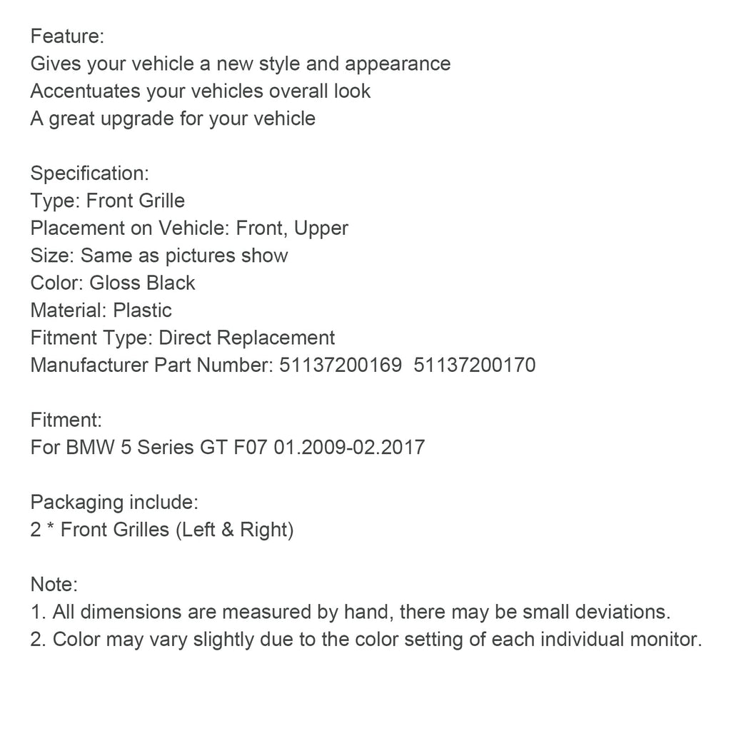Gloss Black Front Kidney Grille Grill Fit For BMW 5 Series GT F07 2009-2017