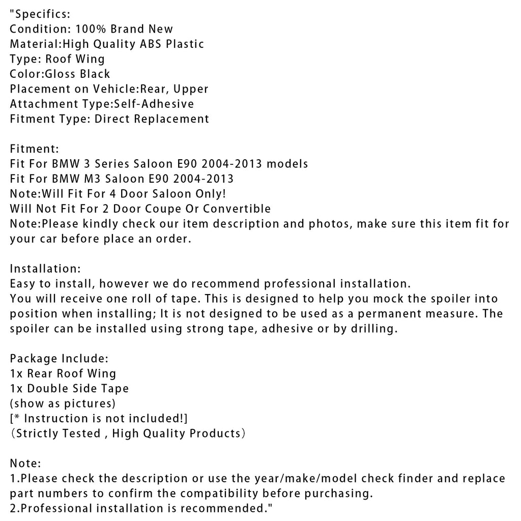 2004-2013 BMW 3 Series Saloon E90 M3 Saloon E90 models Gloss Black Rear Roof Spoiler Window Wing