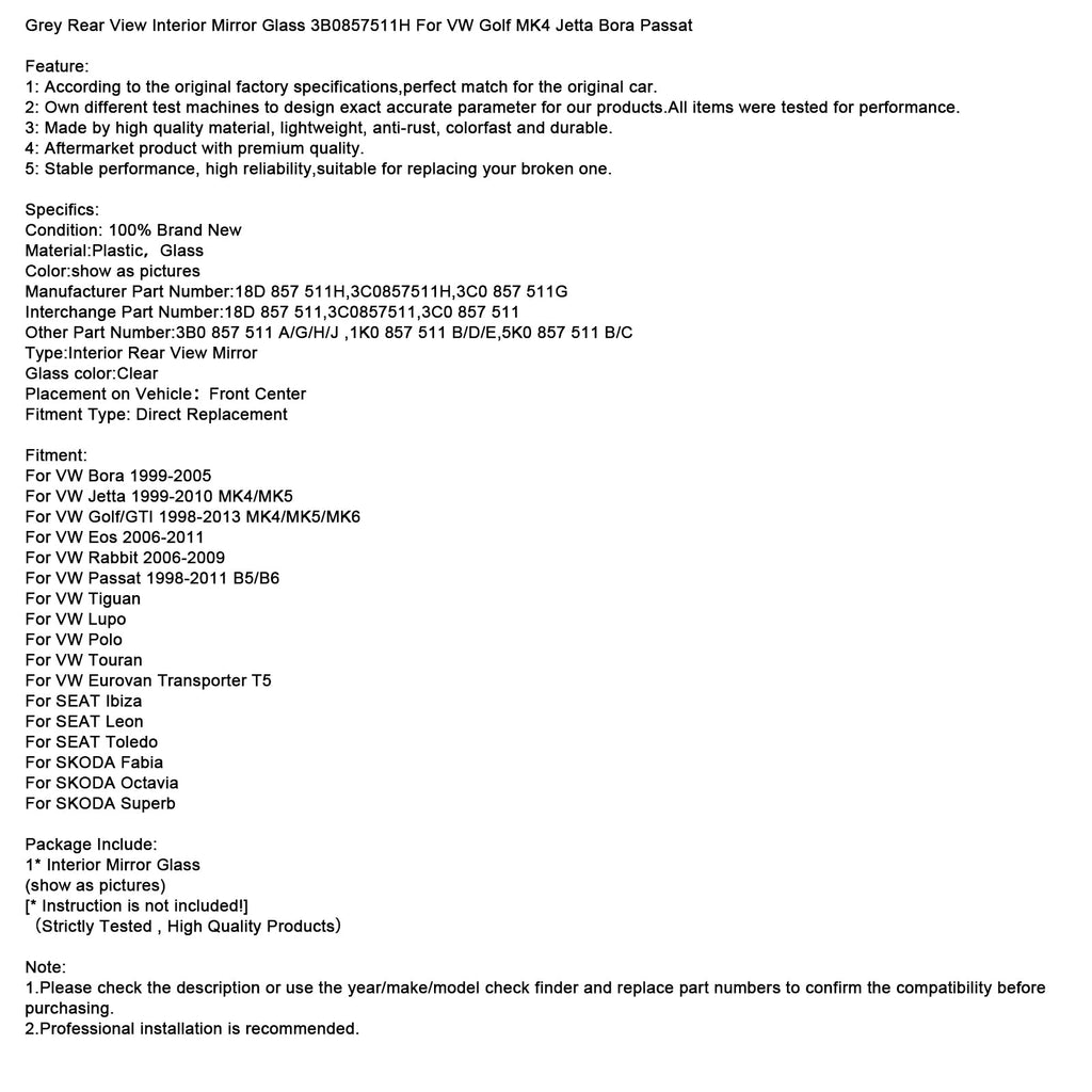 Grey Rear View Interior Mirror Glass 3B0857511H For VW Golf MK4 Jetta Passat