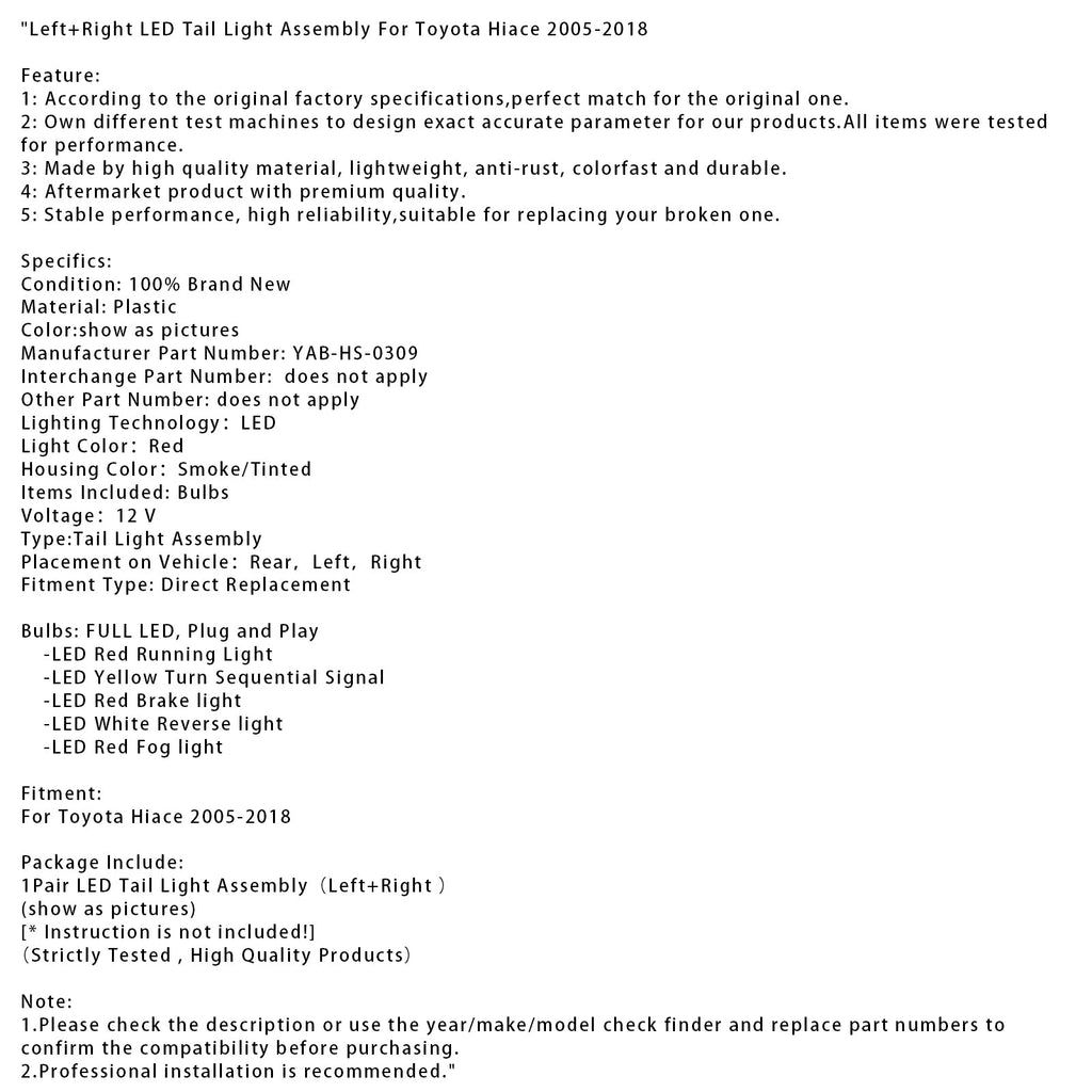 Left+Right LED Tail Light Assembly For Toyota Hiace 2005-2018