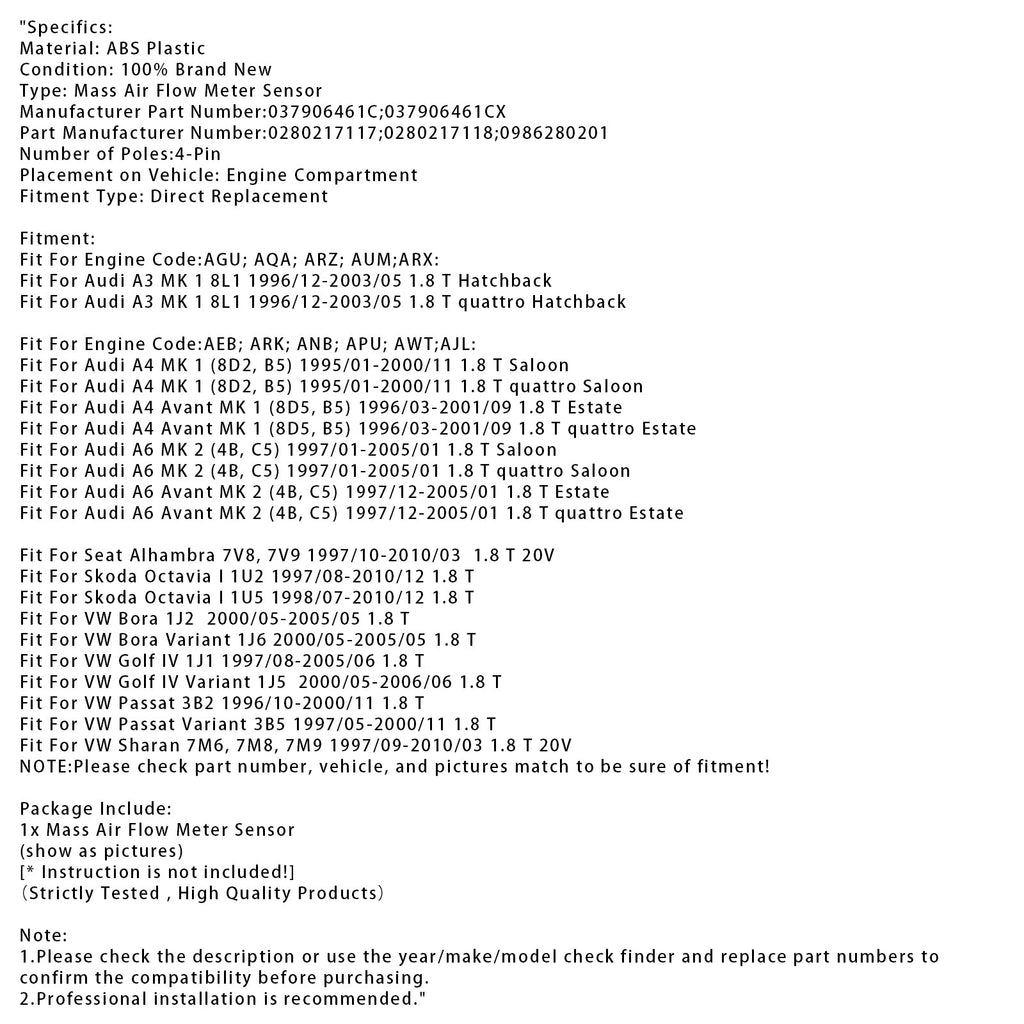 Mass Air Flow Meter Sensor For Audi A3 A4 A6 1.8T VW Jetta Passat 0280217117