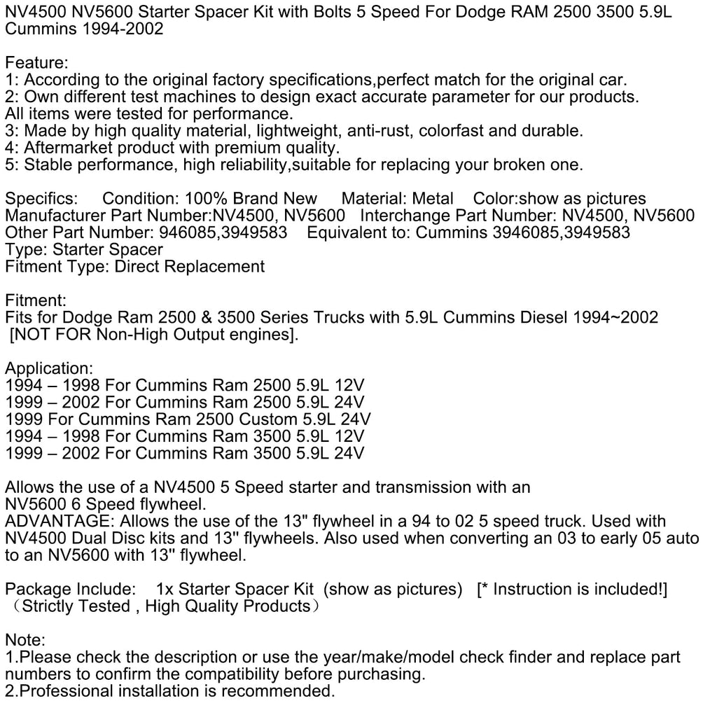 NV4500 NV5600 Starter Spacer Kit with Bolts 5 Speed For Dodge RAM 2500 3500 5.9L Cummins 1994-2002