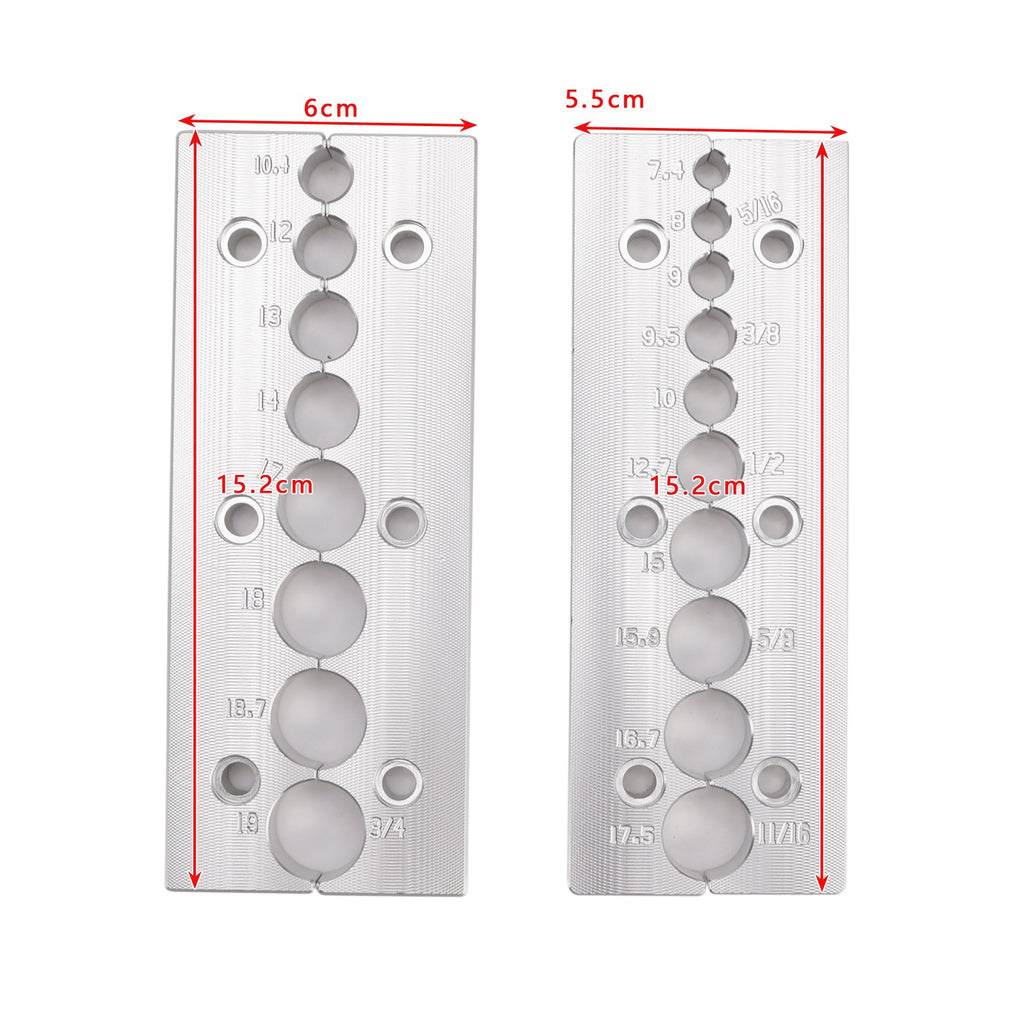 This is a pretty comprehensive set for small sizes that include- 7.4mm, 8mm, 9mm, 3/8"/9.5mm, 10mm, 10.4mm, 12mm, 1/2"/12.7mm, 13mm, 14mm , 15mm, 15.9mm/5/8", 16.7mm, 17mm, 17.5mm/11/16", 18mm, 18.7mm, 3/4"/19mm
