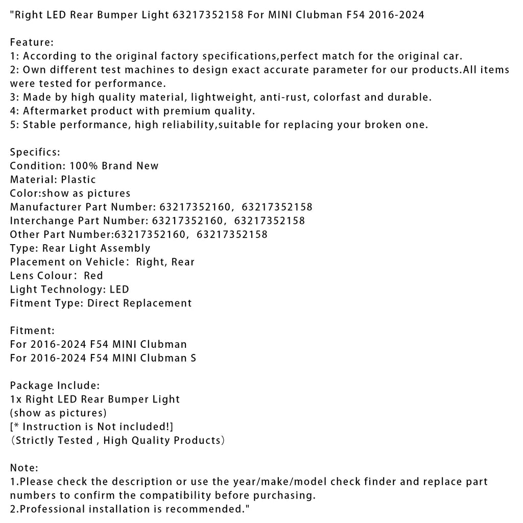 Right LED Rear Bumper Light 63217352158 For MINI Clubman F54 2016-2024