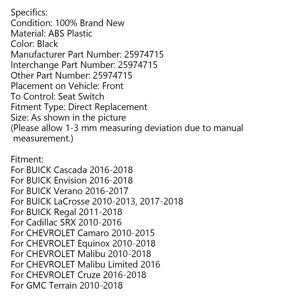 Front Right Power Seat Switch for Cadillac SRX Buick Chevrolet GMC 25974715