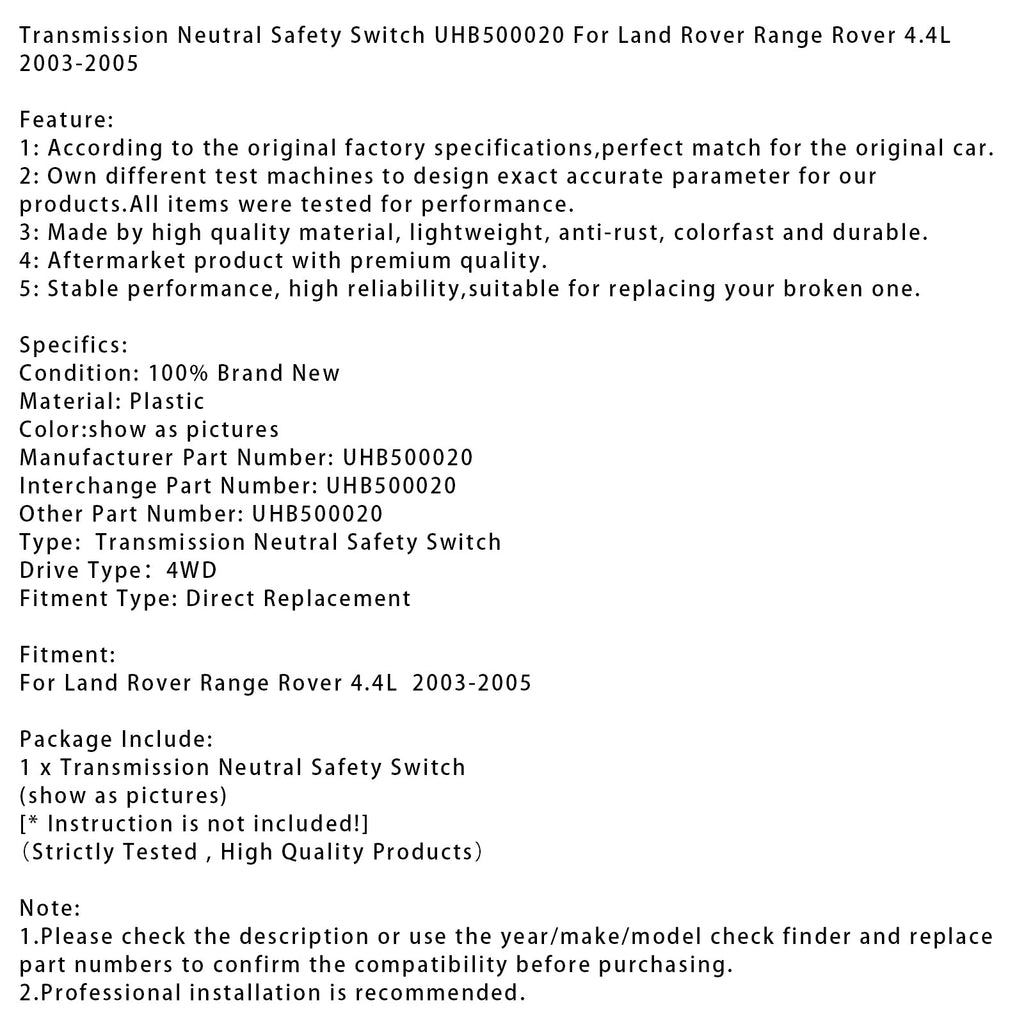 Transmission Neutral Safety Switch UHB500020 For Land Rover Range Rover 4.4L 2003-2005