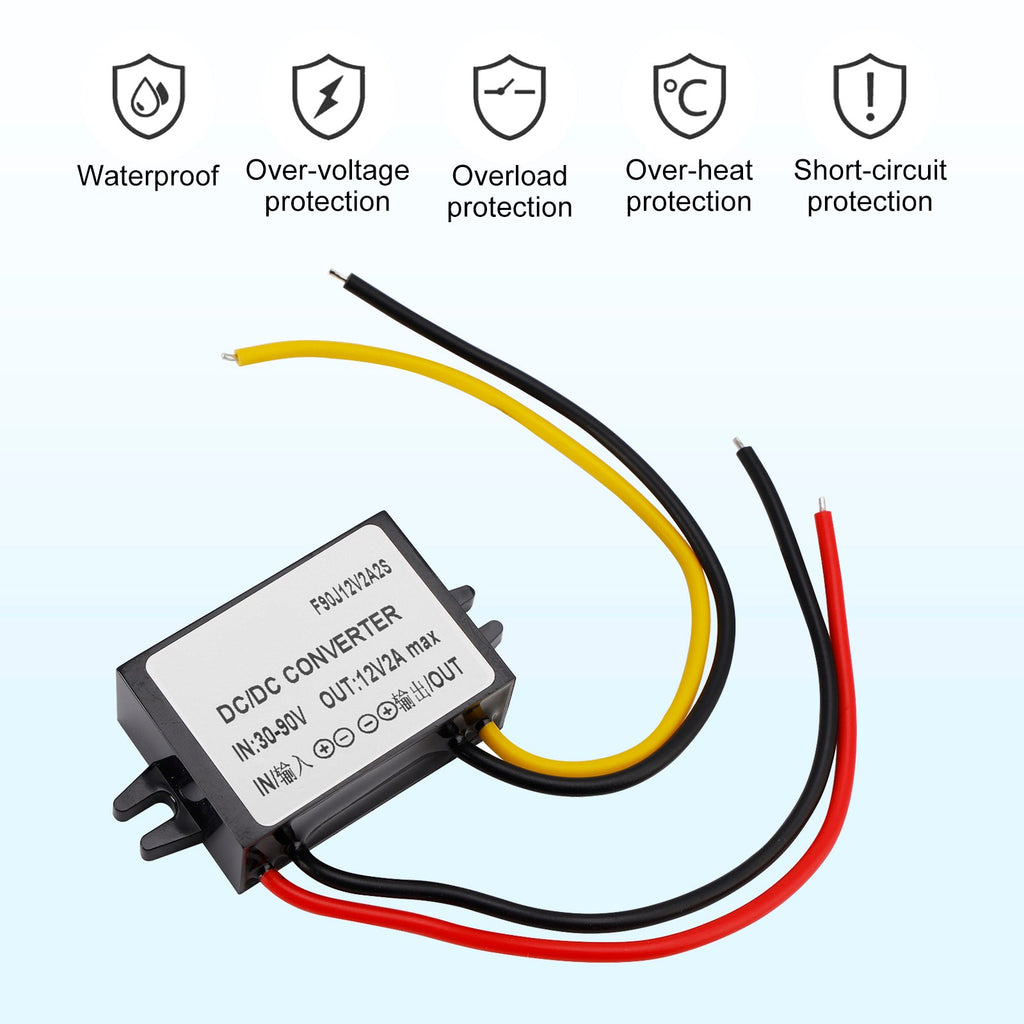 WaterProof 30-90V to 12V 2A 24W Step Down DC/DC Power Converter Regulator