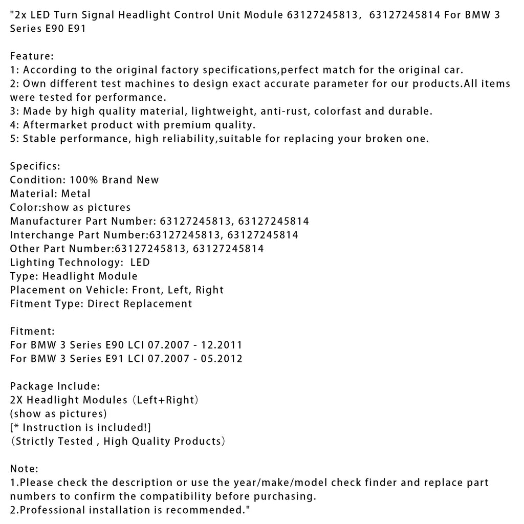 2x LED Turn Signal Headlight Control Unit Module 63127245813 63127245814 For BMW 3 Series E90 E91