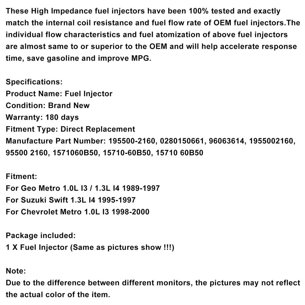 These High Impedance fuel injectors have been 100% tested and exactly match the internal coil resistance and fuel flow rate of OEM fuel injectors.The individual flow characteristics and fuel atomization of above fuel injectors are almost same to or superior to the OEM and will help accelerate response time, save gasoline and improve MPG.