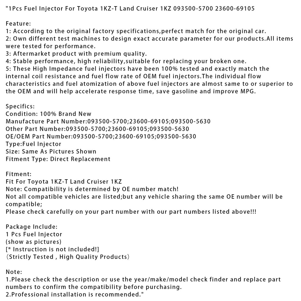 1Pcs Fuel Injector For Toyota 1KZ-T Land Cruiser 1KZ 093500-5700 23600-69105
