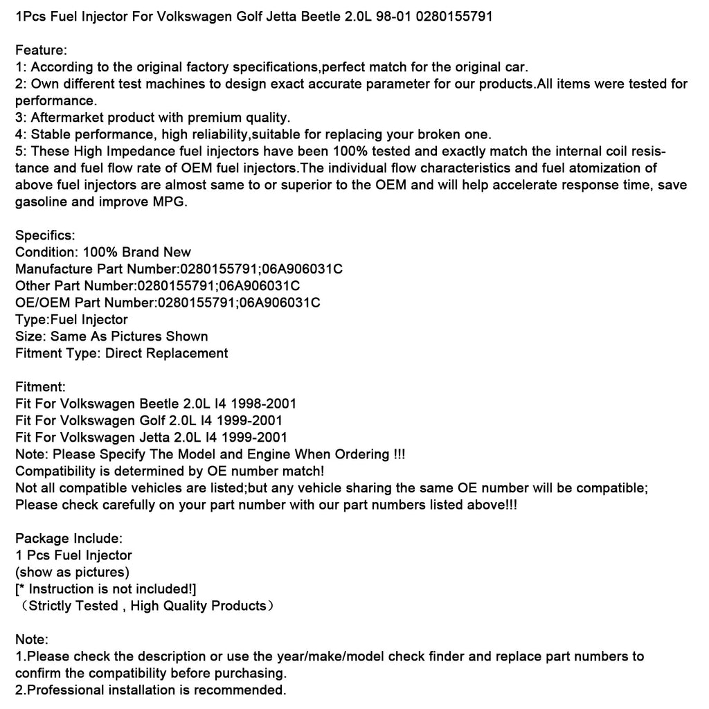 1Pcs Fuel Injector For Volkswagen Golf Jetta Beetle 2.0L 98-01 0280155791