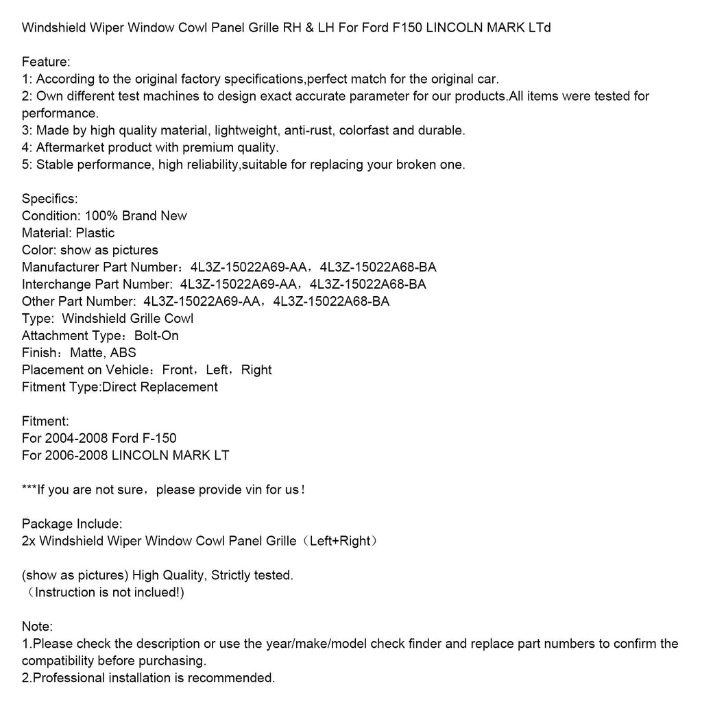 Windshield Wiper Window Cowl Panel Grille RH & LH Fit For Ford F150 LINCOLN MARK LTd
