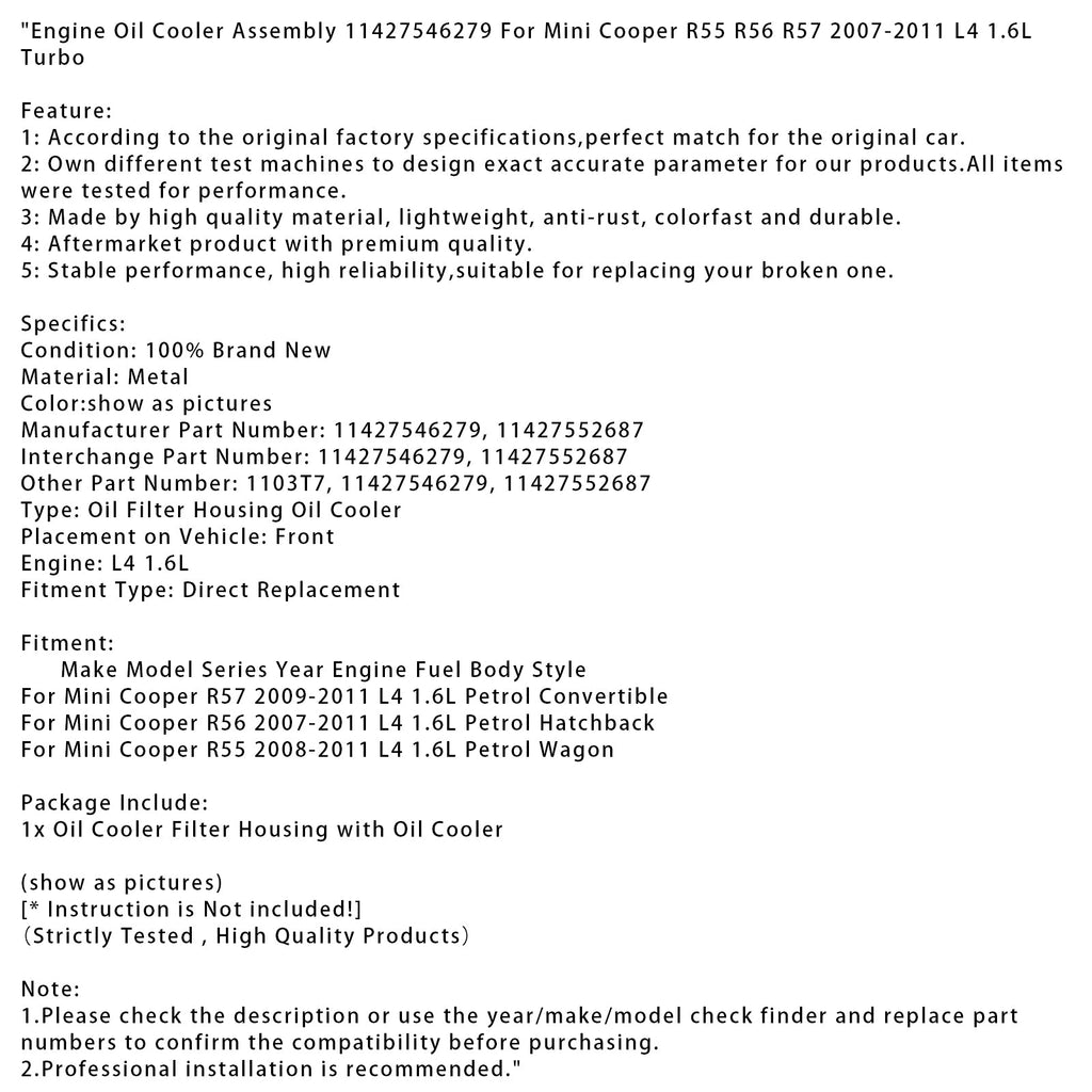 Engine Oil Cooler Assembly 11427546279 For Mini Cooper R55 R56 R57 2007-2011 L4 1.6L Turbo