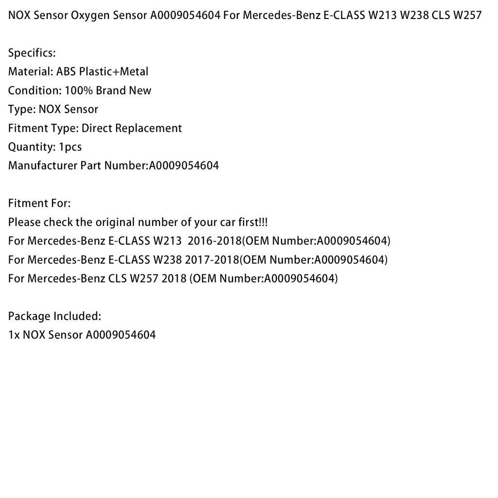 NOX Sensor Oxygen Sensor A0009054604 Fit For Mercedes-Benz E-CLASS W213 W238 CLS W257