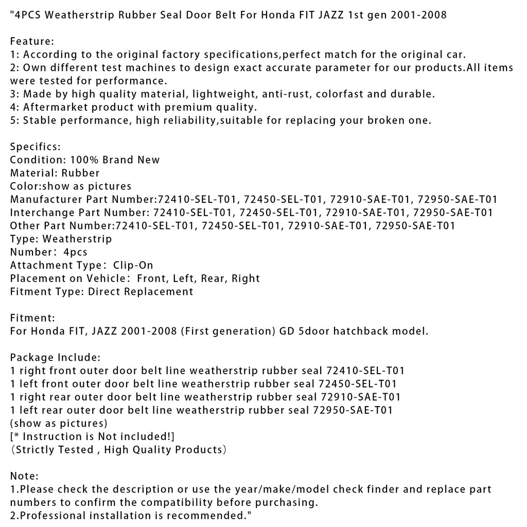 4PCS Weatherstrip Rubber Seal Door Belt For Honda FIT JAZZ 1st gen 2001-2008