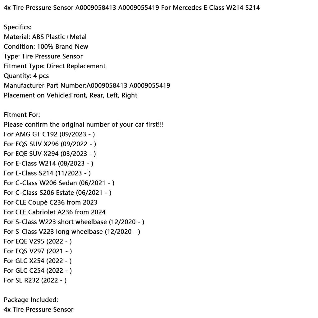 4x Tire Pressure Sensor A0009058413 A0009055419 For Mercedes E Class W214 S214