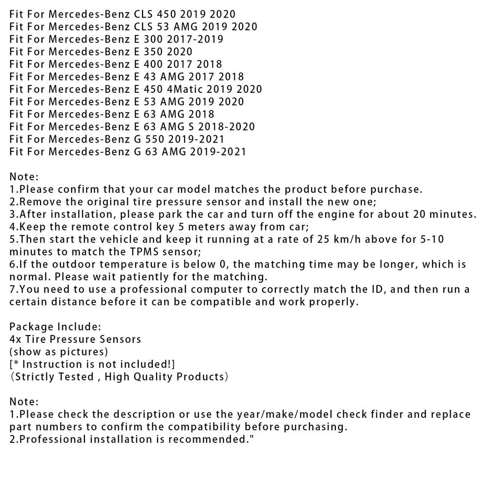 4X TPMS Tire Pressure Sensor For Mercedes-Benz A E Class W213 A0009052102
