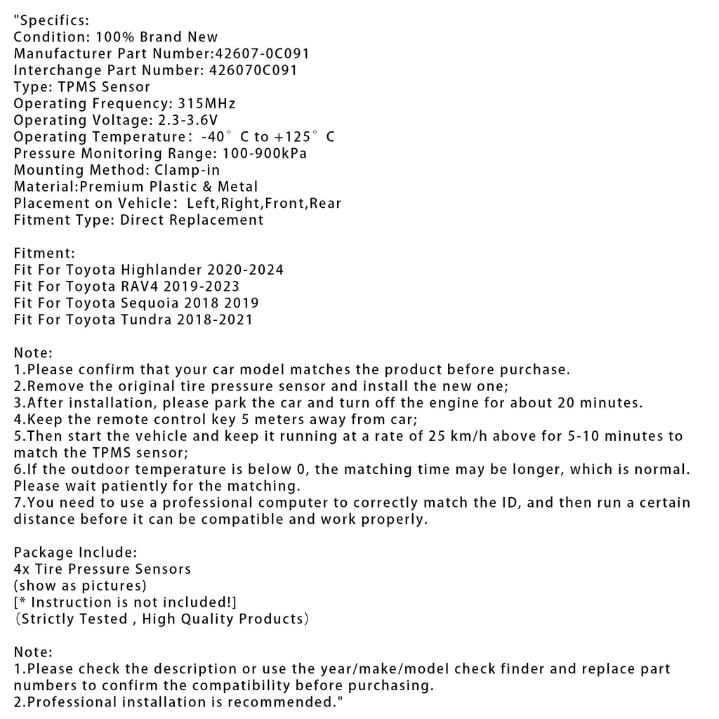 4X TPMS Tire Pressure Sensor For Toyota RAV4 Highlander Tundra 426070C091