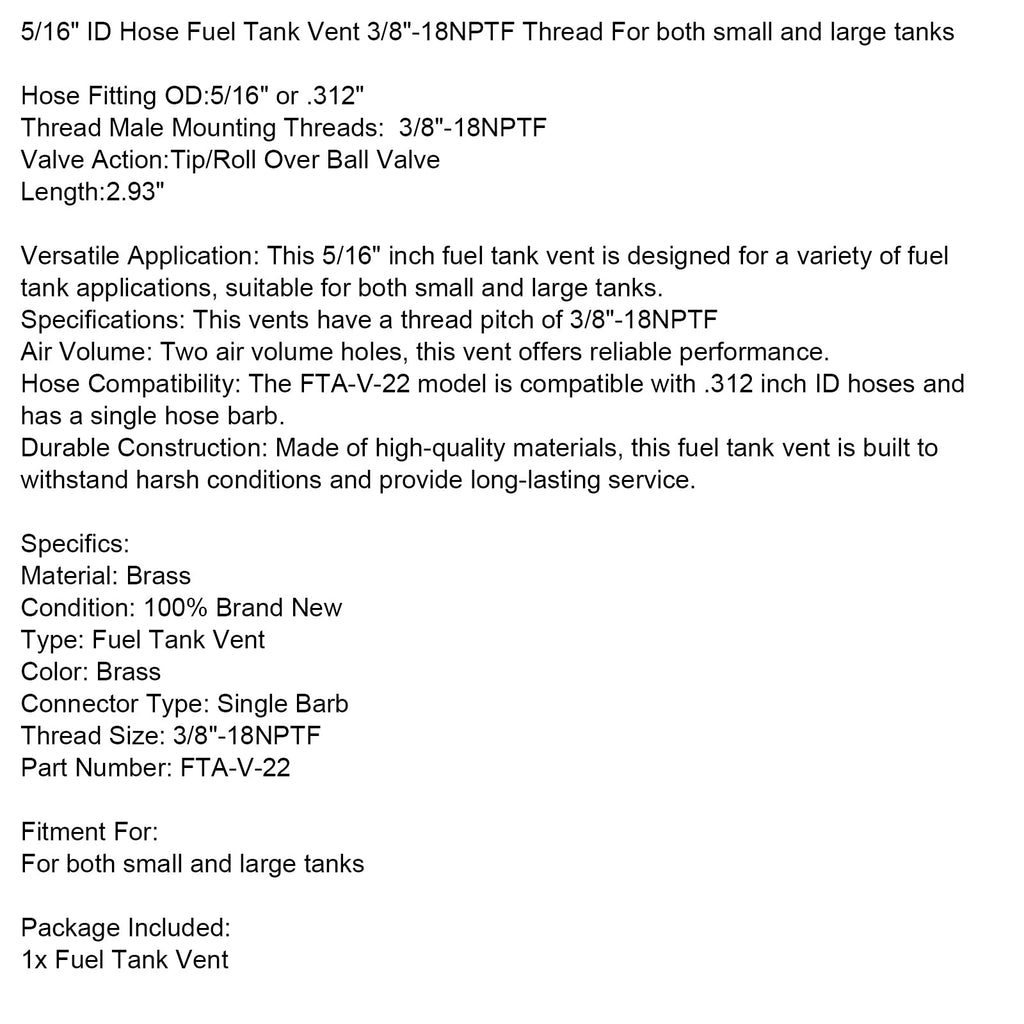 5/16" ID Hose Fuel Tank Vent 3/8"-18NPTF Thread For both small and large tanks