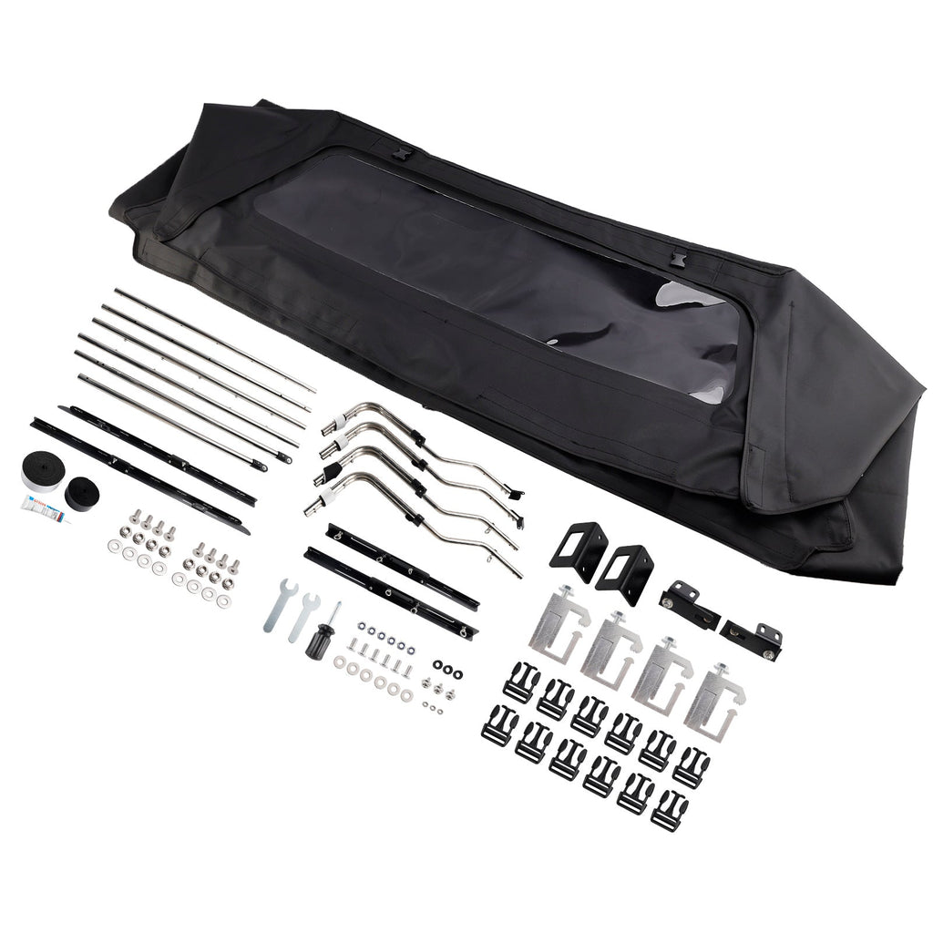 When not in use, the top is stored in the convenient built-in storage system along with the side panels.