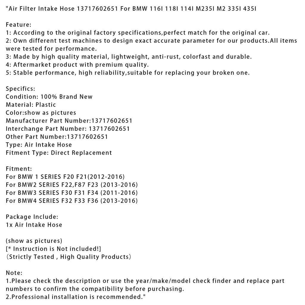 Air Filter Intake Hose 13717602651 For BMW 116I 118I 114I M235I M2 335I 435I