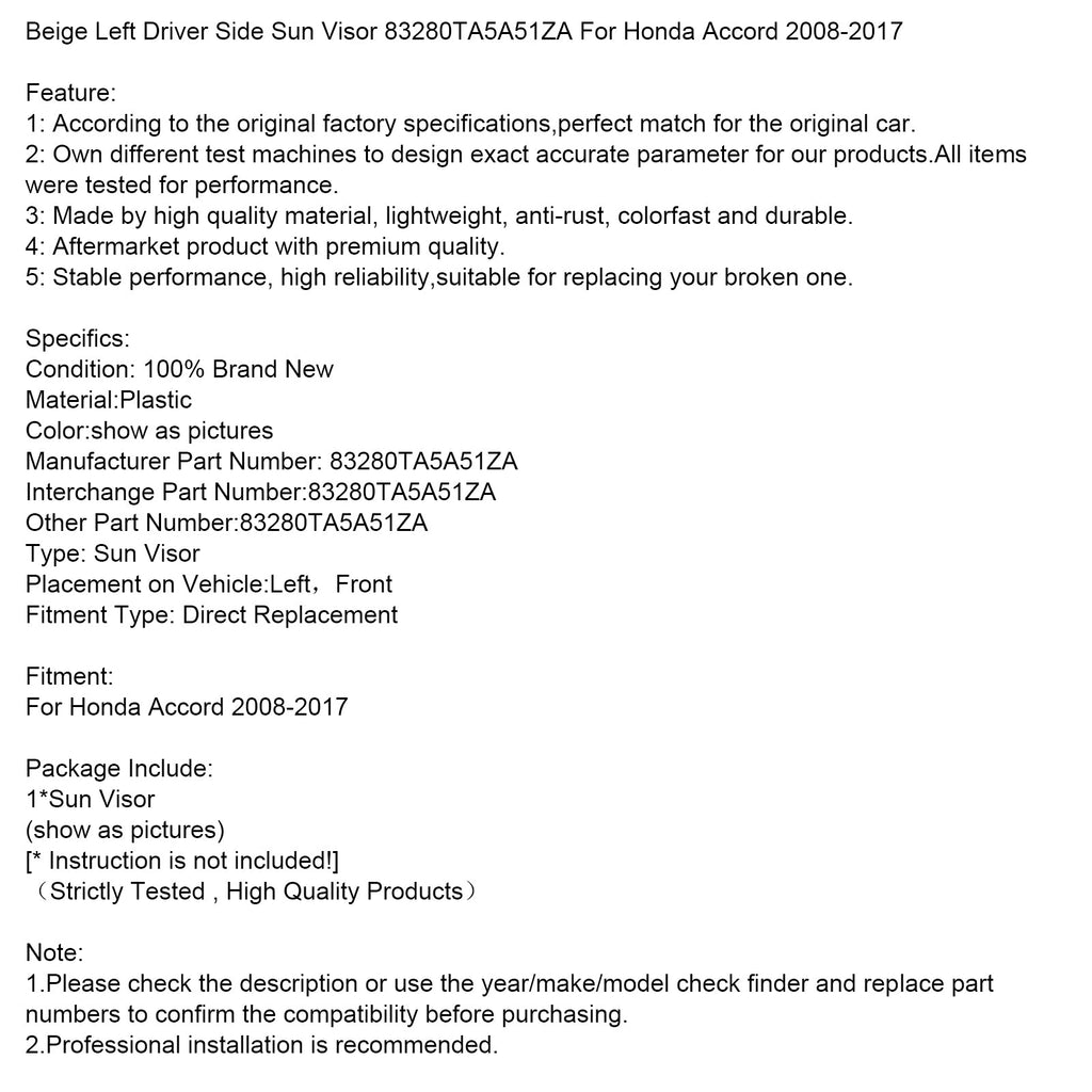 Beige Left Driver Side Sun Visor 83280TA5A51ZA For Honda Accord 2008-2017