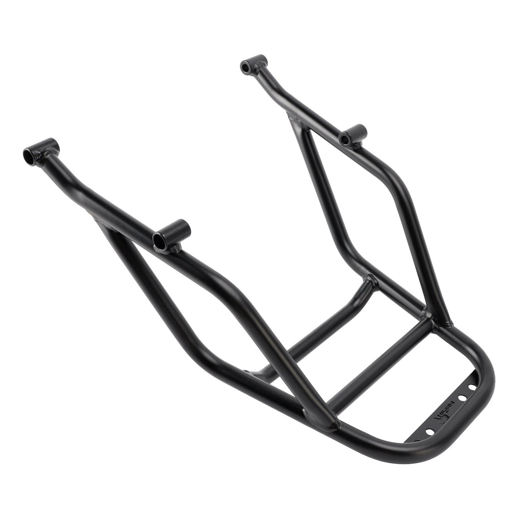 Our tough, cross-braced rack system acts like an additional subframe, strengthening the rear of the bike, acts like a rear crashbar.