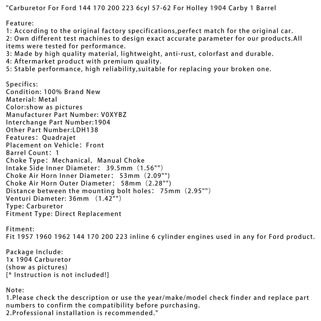 Carburetor For Ford 144 170 200 223 6cyl 57-62 For Holley 1904 Carby 1 Barrel