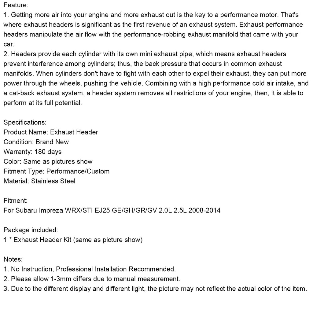 Exhaust Manifold Fit Subaru Impreza WRX STi GE/GH/GR/GV 2.0L 2.5L 2008-2014