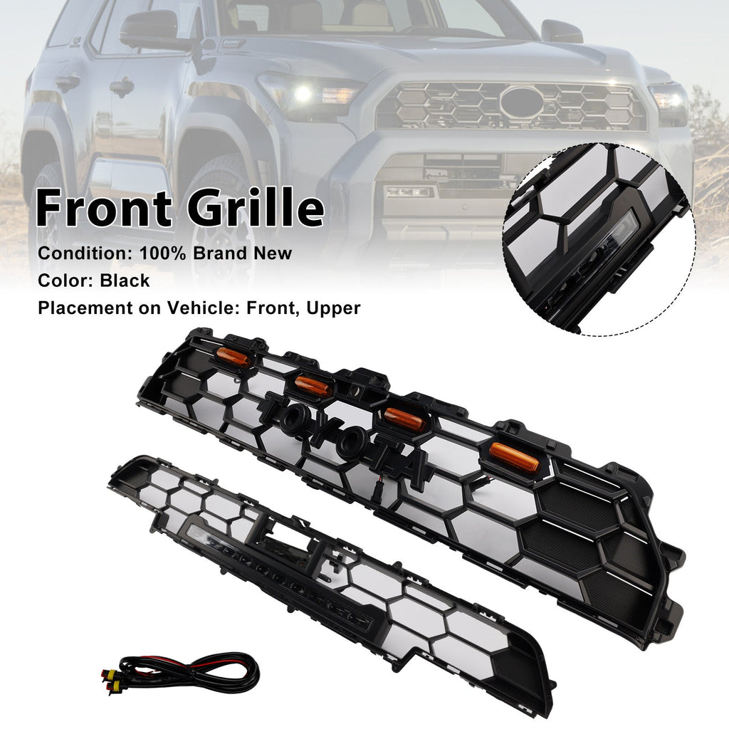 Front Bumper Grille Grill Fit for Toyota 4Runner TRD PRO 2024+ W/Light Bar Black