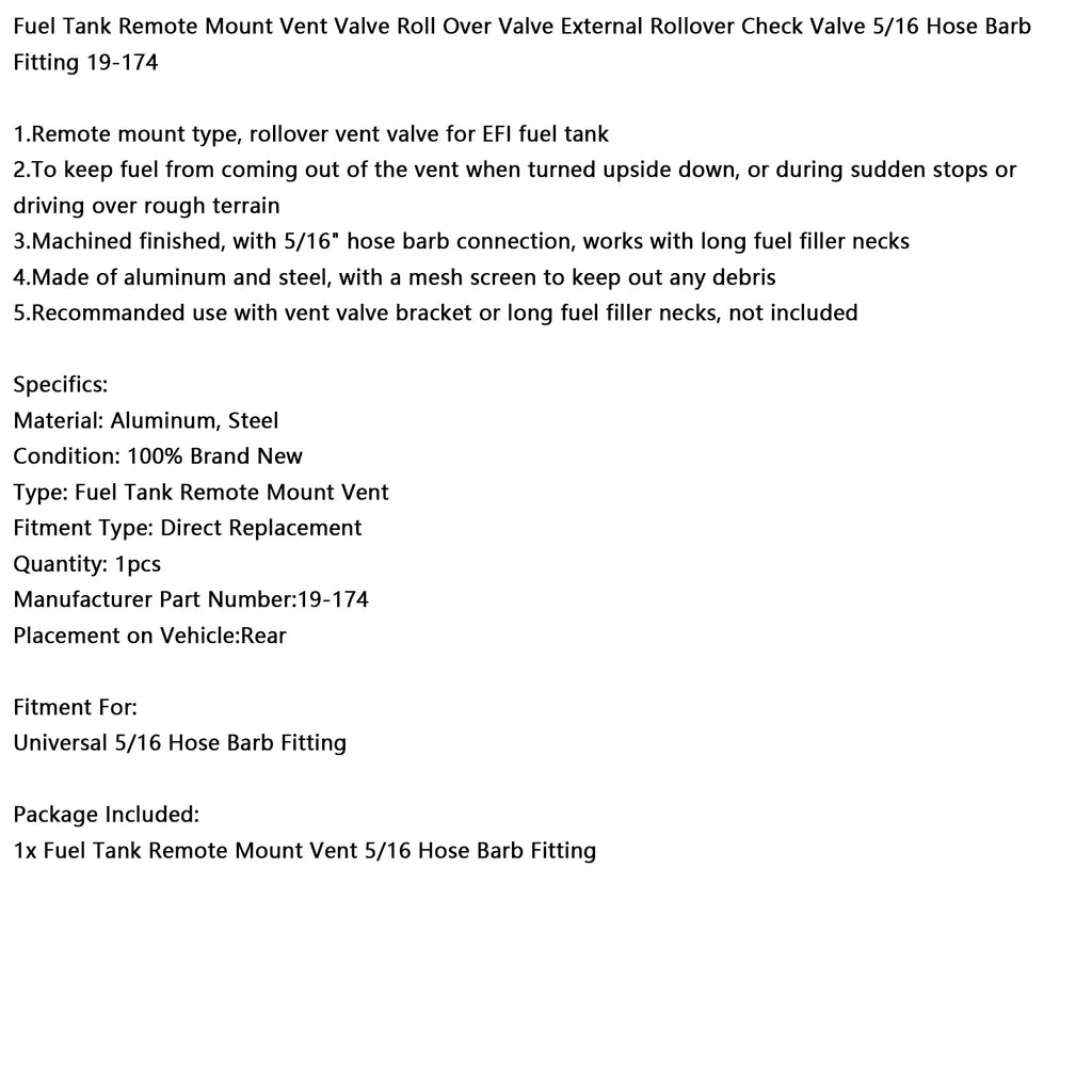 Fuel Tank Remote Mount Vent Valve Roll Over Valve External Rollover Check Valve 5/16 Hose Barb Fitting 19-174