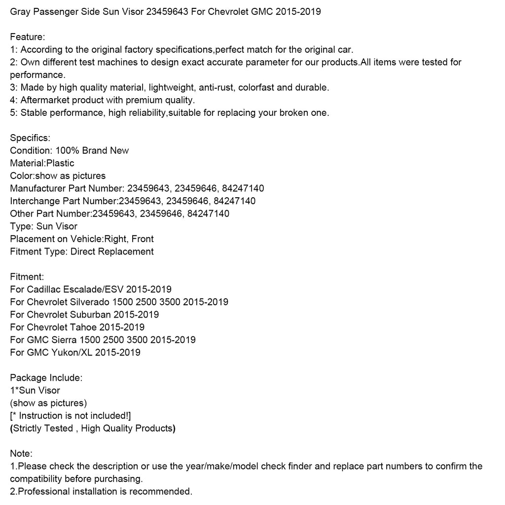 Gray Right Side Sun Visor 23459643 For Chevrolet GMC 2014-2019