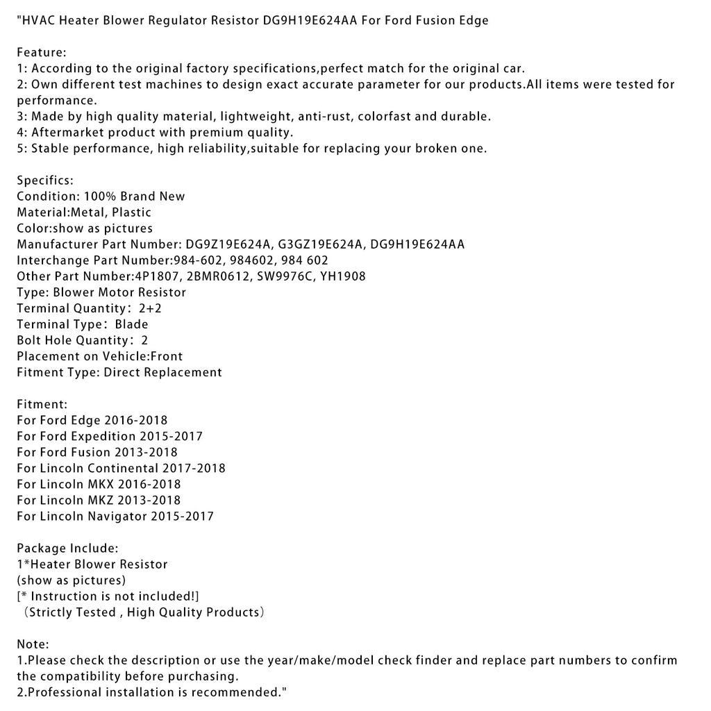 HVAC Heater Blower Regulator Resistor DG9H19E624AA For Ford Fusion Edge