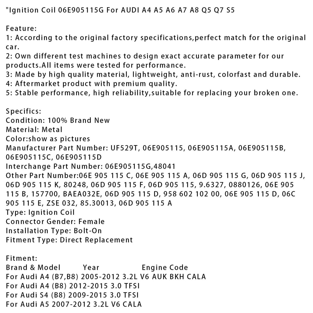 Ignition Coil 06E905115G For AUDI A4 A5 A6 A7 A8 Q5 Q7 S5
