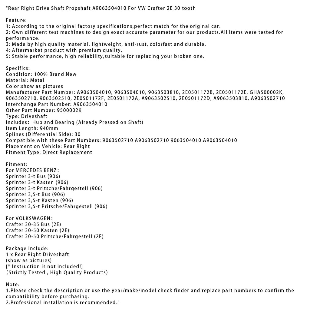 Rear Right Drive Shaft Propshaft A9063504010 For VW Crafter 2E 30 tooth