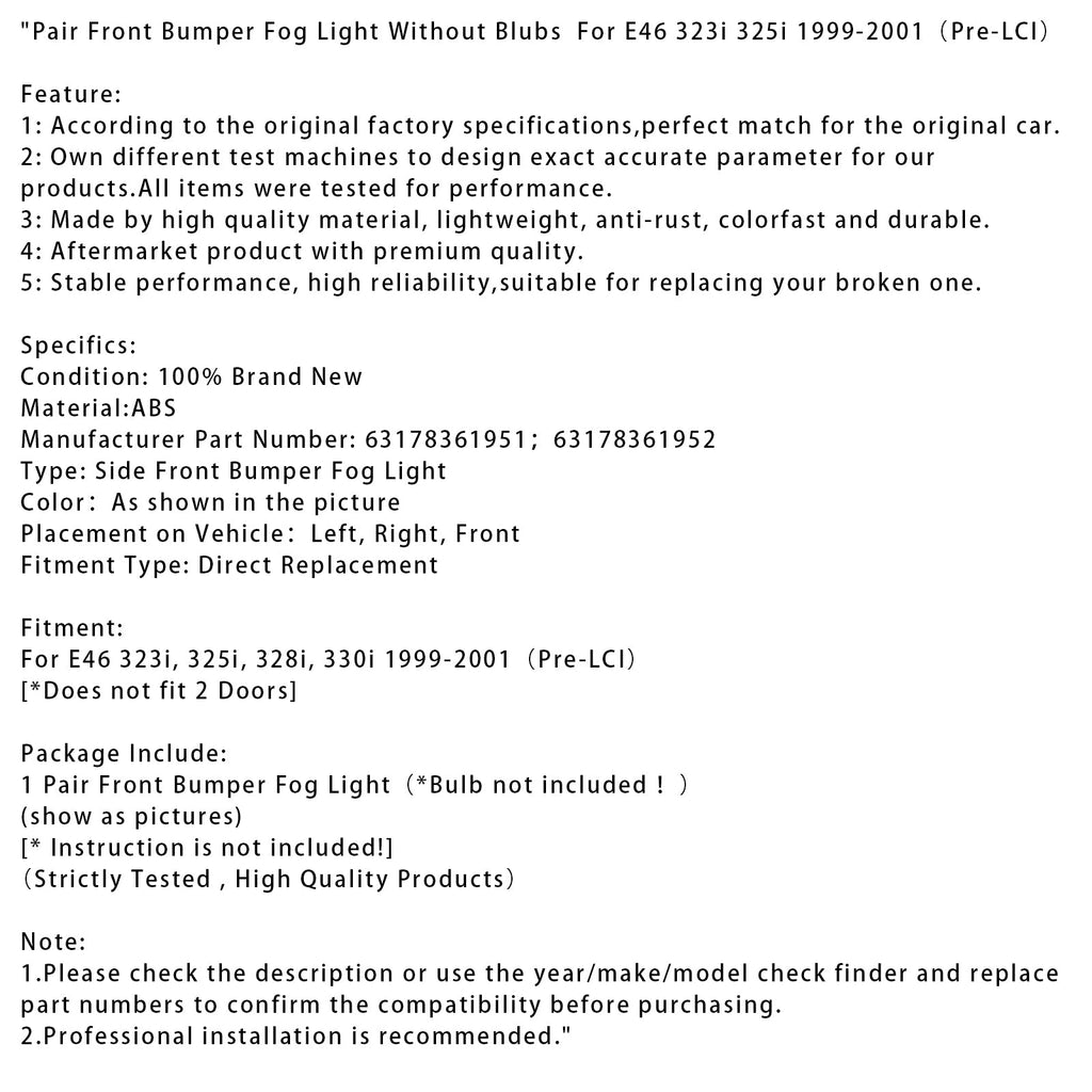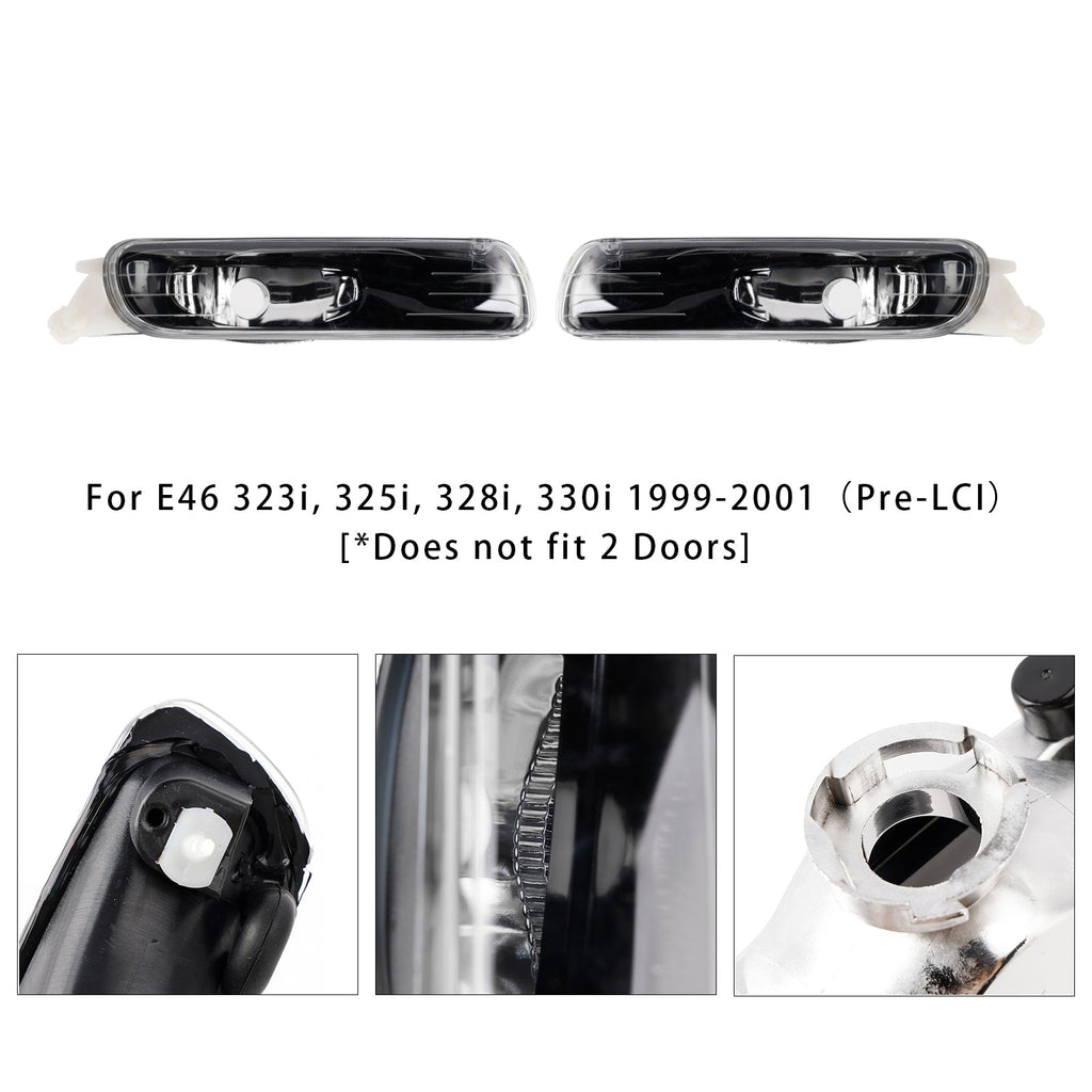 Pair Front Bumper Fog Light Without Blubs For E46 323i 325i 1998-2001(Pre-LCI)