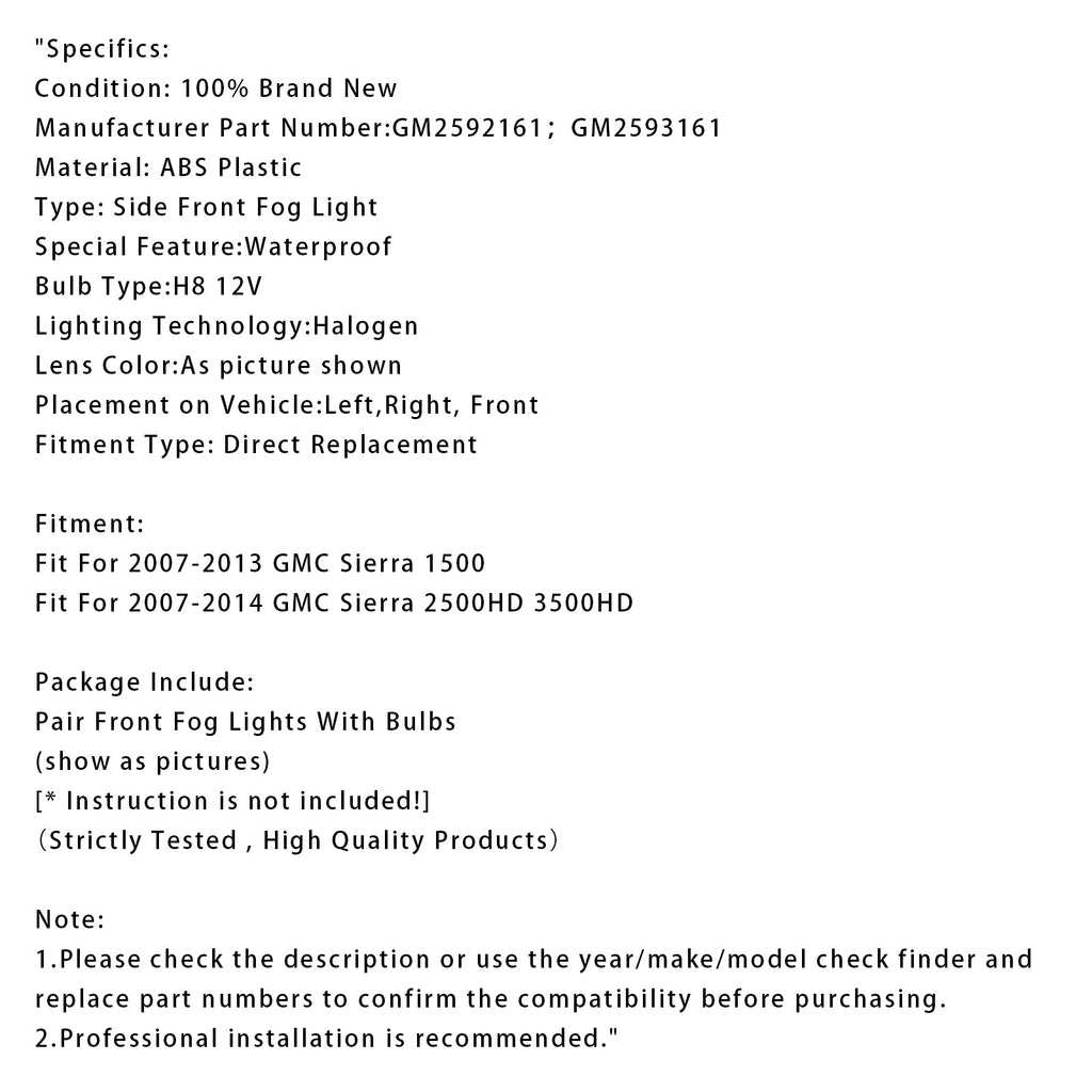 Pair Front Fog Lights Lamps With Bulbs For GMC Sierra 1500 2007-2013?