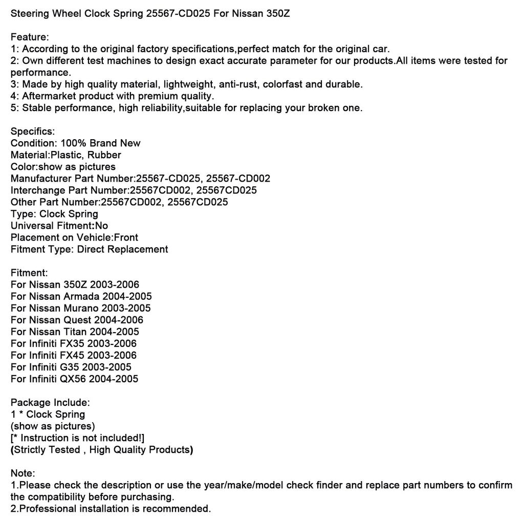 Steering Wheel Clock Spring 25567-CD025 For Nissan 350Z