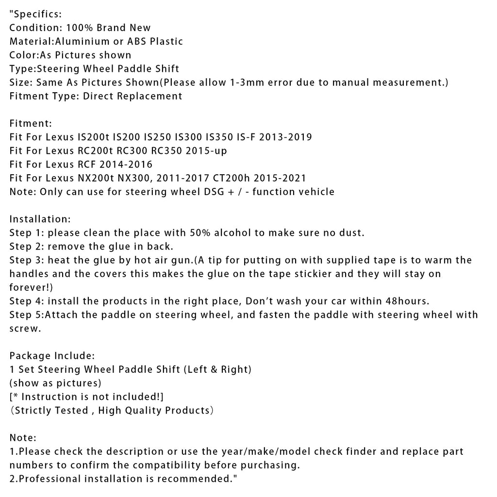 Steering Wheel Paddle Shifter Extensions For Lexus IS RC RCF NX