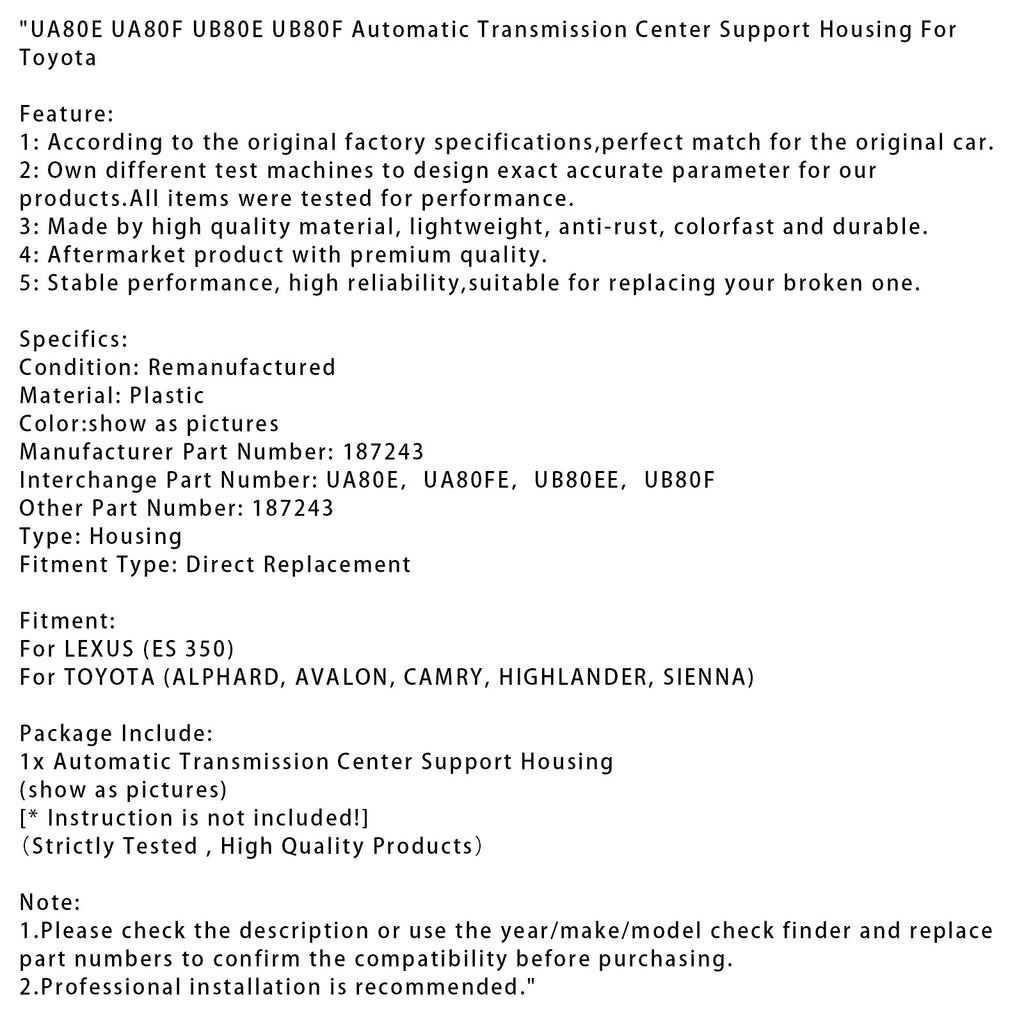 UA80E UA80F UB80E UB80F Automatic Transmission Center Support Housing For Toyota