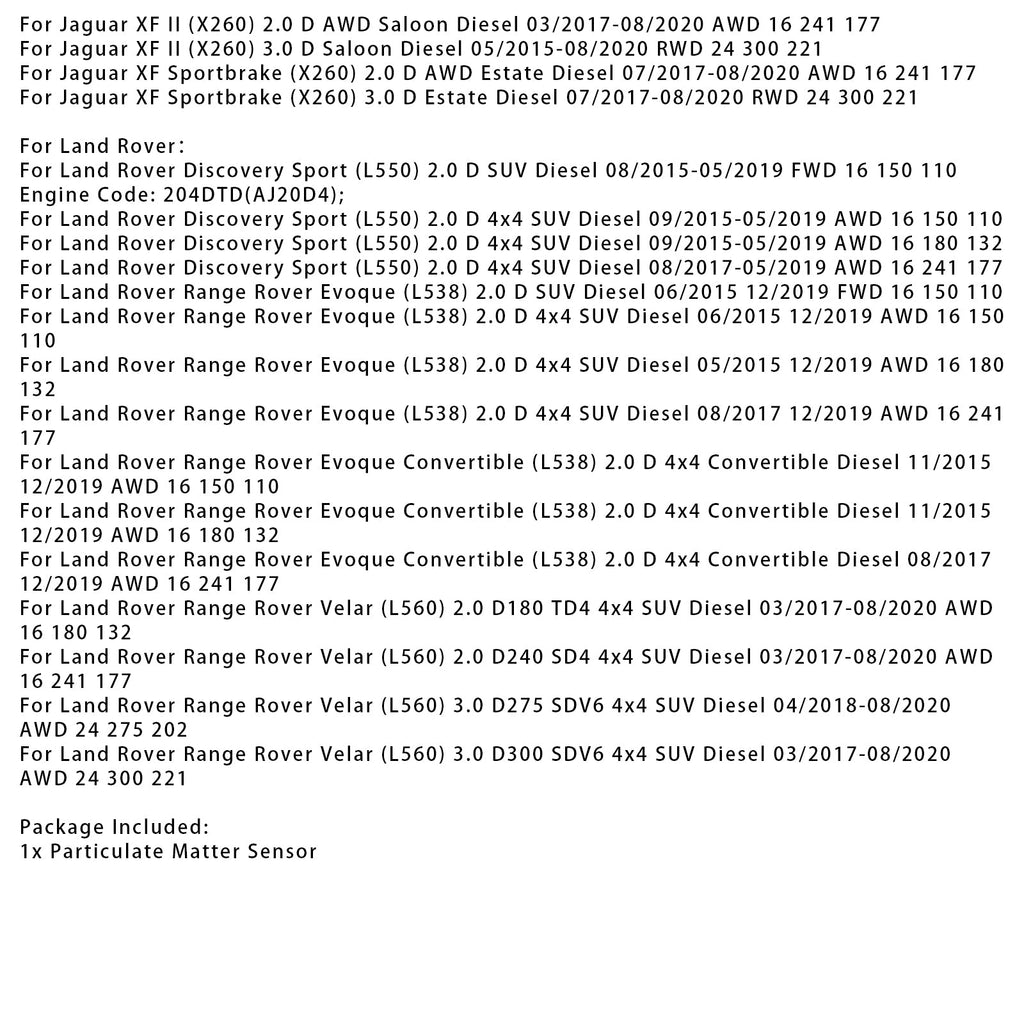 11/2015-12/2019 Land Rover Range Rover Evoque Convertible (L538) 2.0 D 4x4 Convertible Diesel PM Sensor Particulate Matter Sensor HJ32-5H310-AA 204DTD