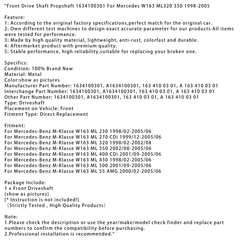 Front Drive Shaft Propshaft 1634100301 For Mercedes W163 ML320 350 1998-2005