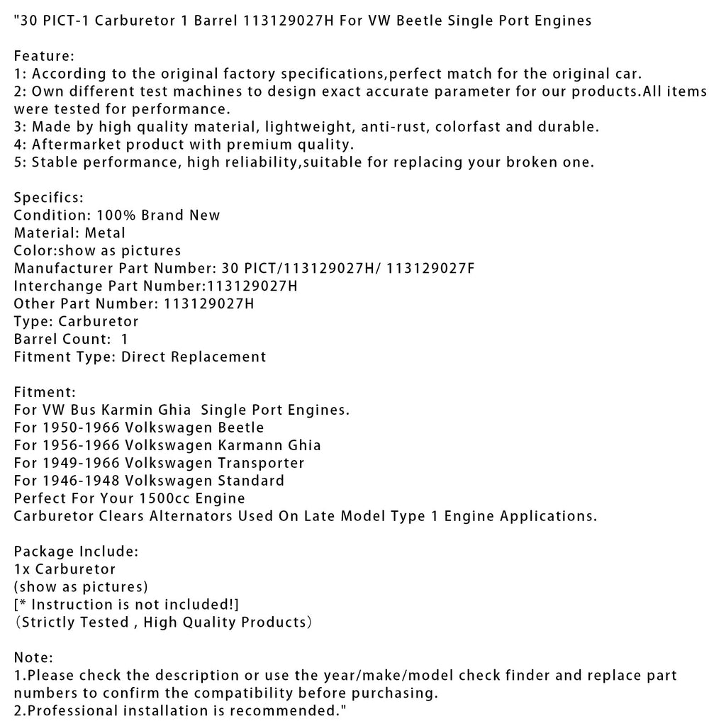 30 PICT-1 Carburetor 1 Barrel 113129027H For VW Beetle Single Port Engines