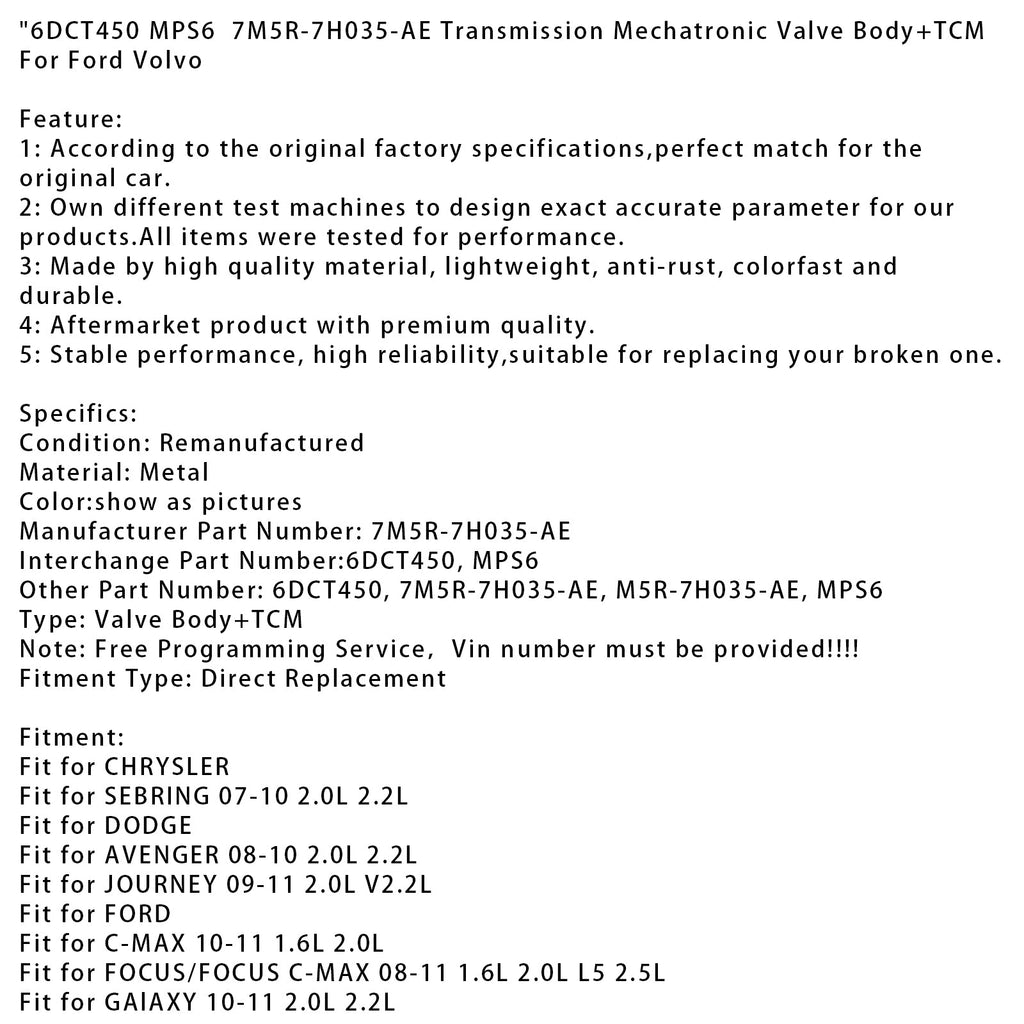 Other Part Number: 6DCT450, 7M5R-7H035-AE, M5R-7H035-AE, MPS6