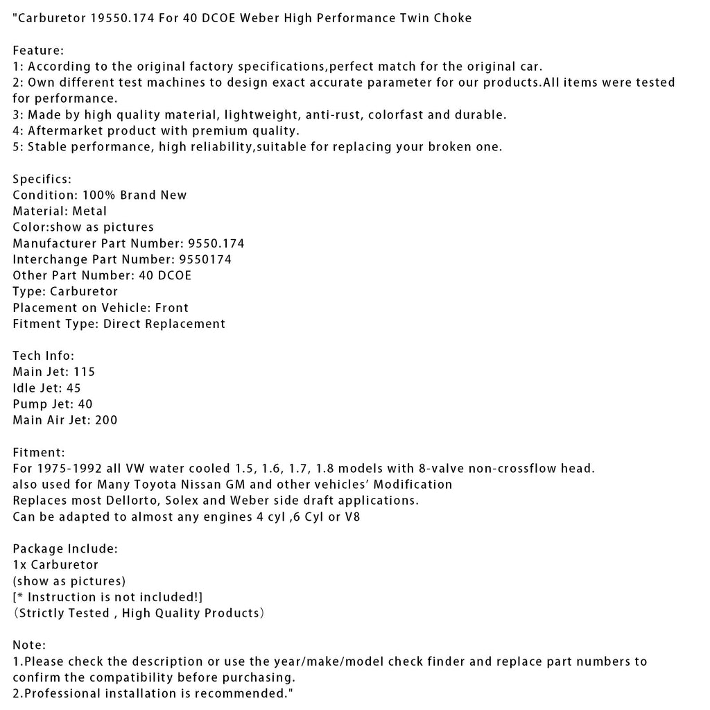 Carburetor 19550.174 For 40 DCOE Weber High Performance Twin Choke
